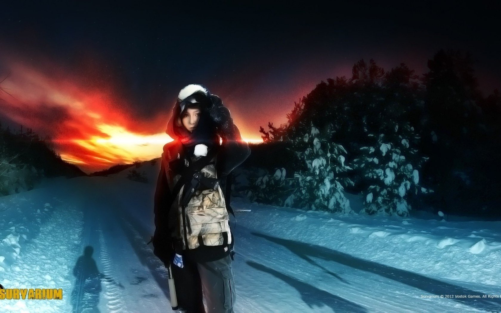 Puesta de sol con el cielo azul y la sombra de las montañas