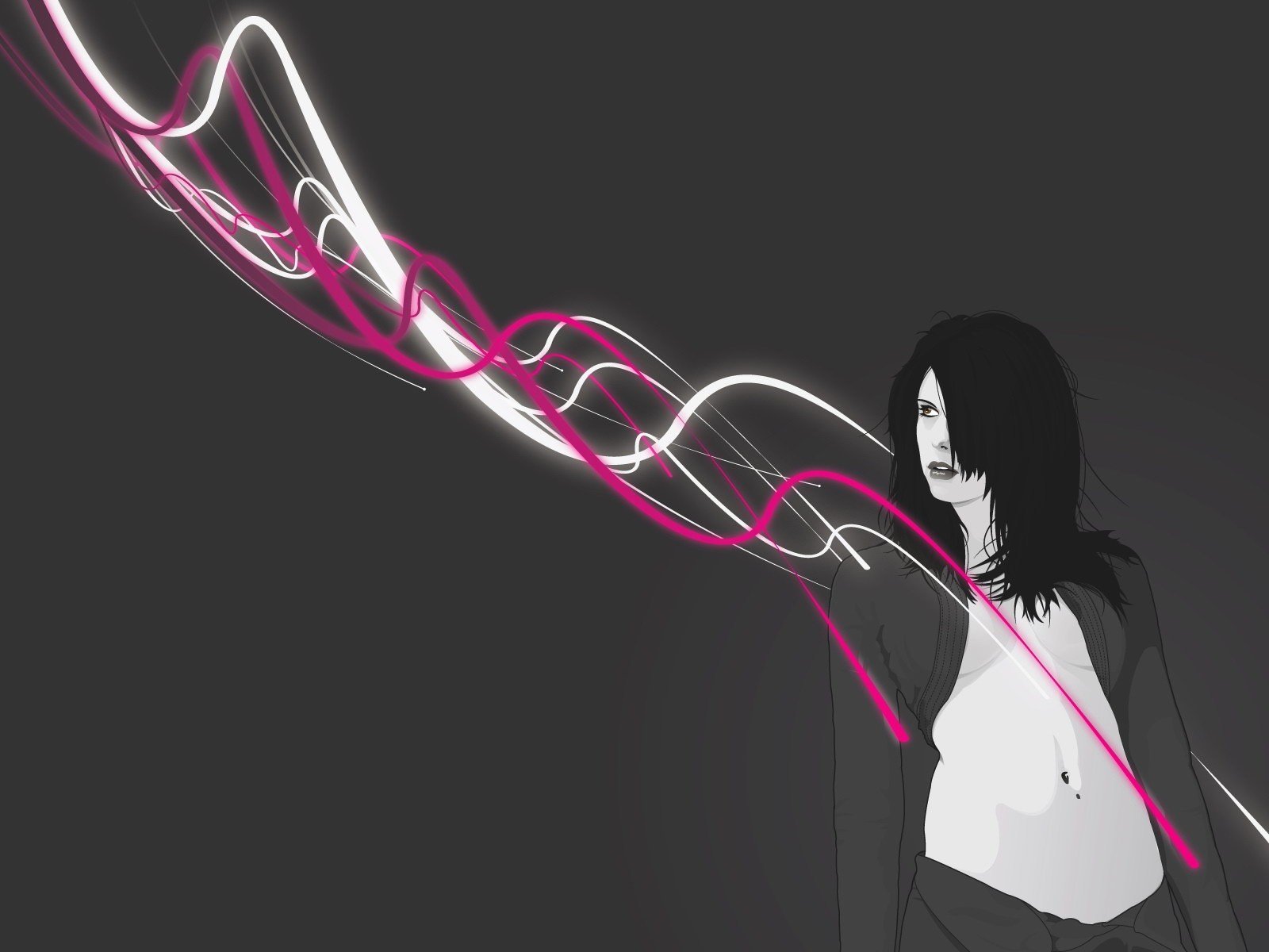 Imagen en blanco y negro de una niña en el fondo de líneas rosadas y blancasImagen en blanco y negro de una niña en el fondo de líneas Rosadas y blancas