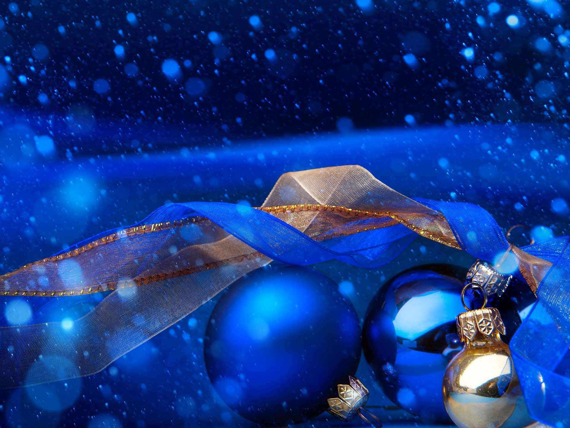 Orbes dorados y azules de la temporada con cintas