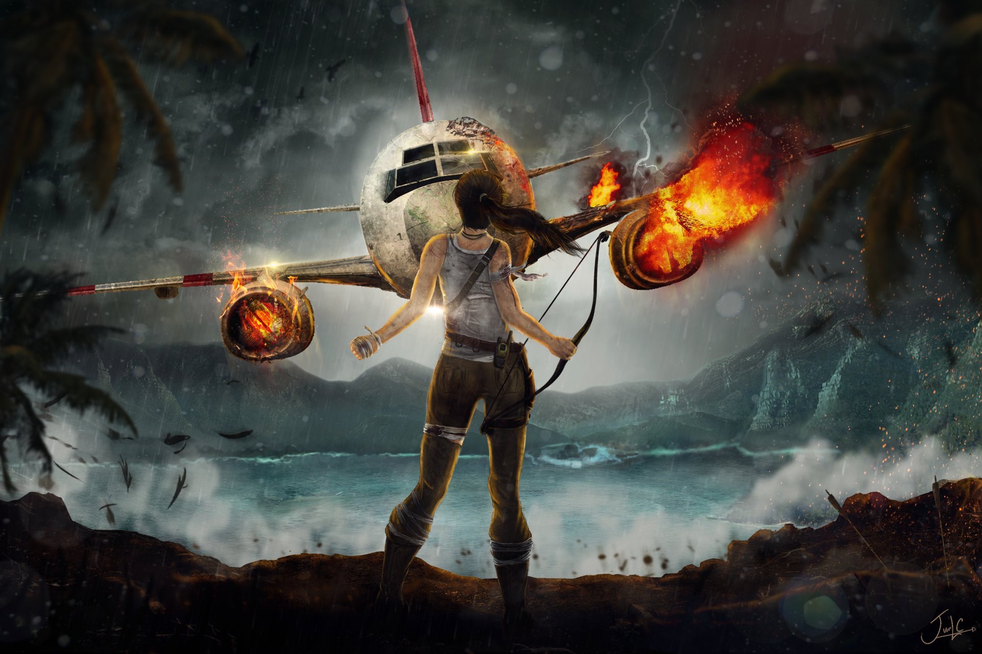 Chica cae de un acantilado y dispara un arco a un loboChica cae de un acantilado y dispara un arco a un lobo
