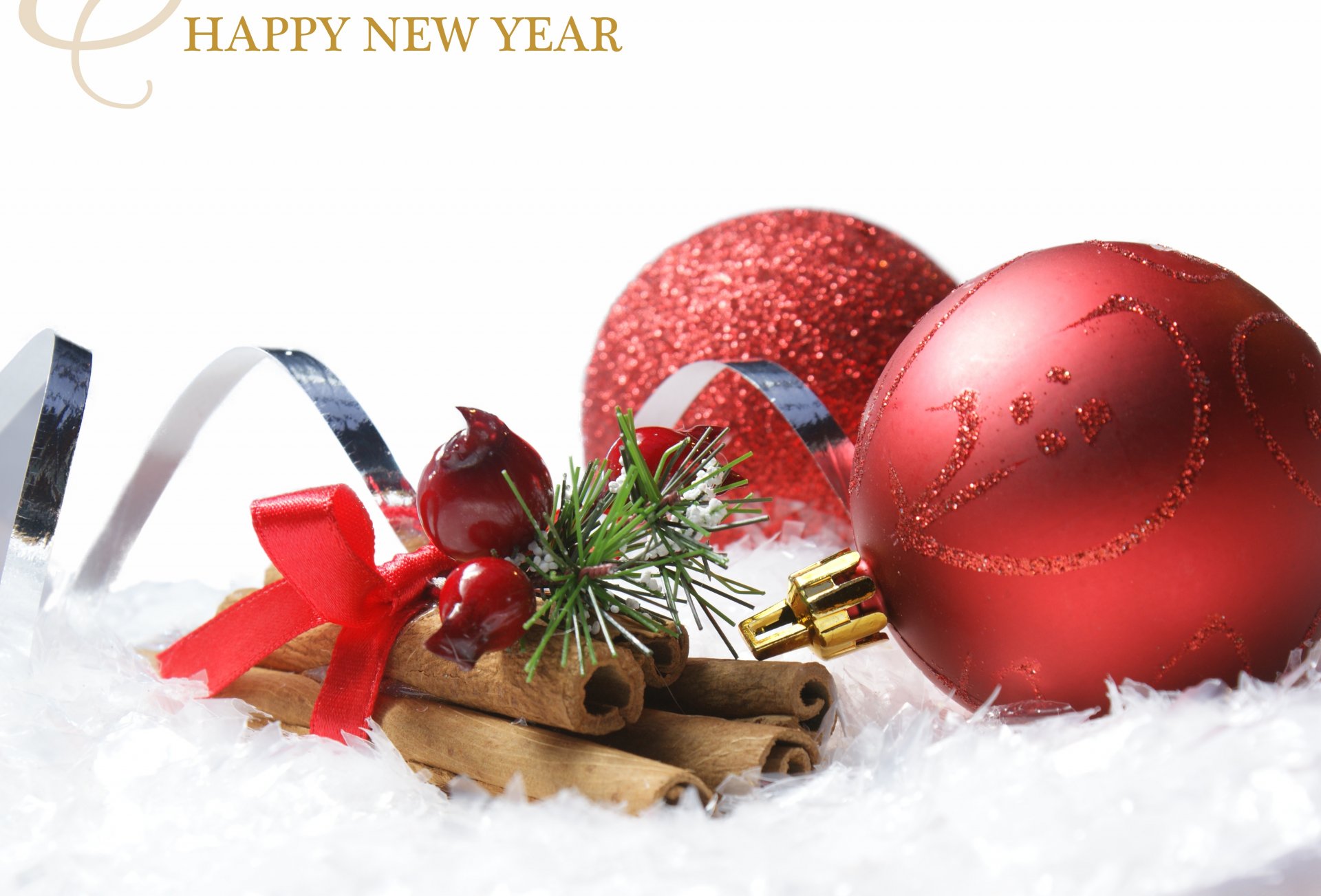 Bolas rojas de Navidad y canela