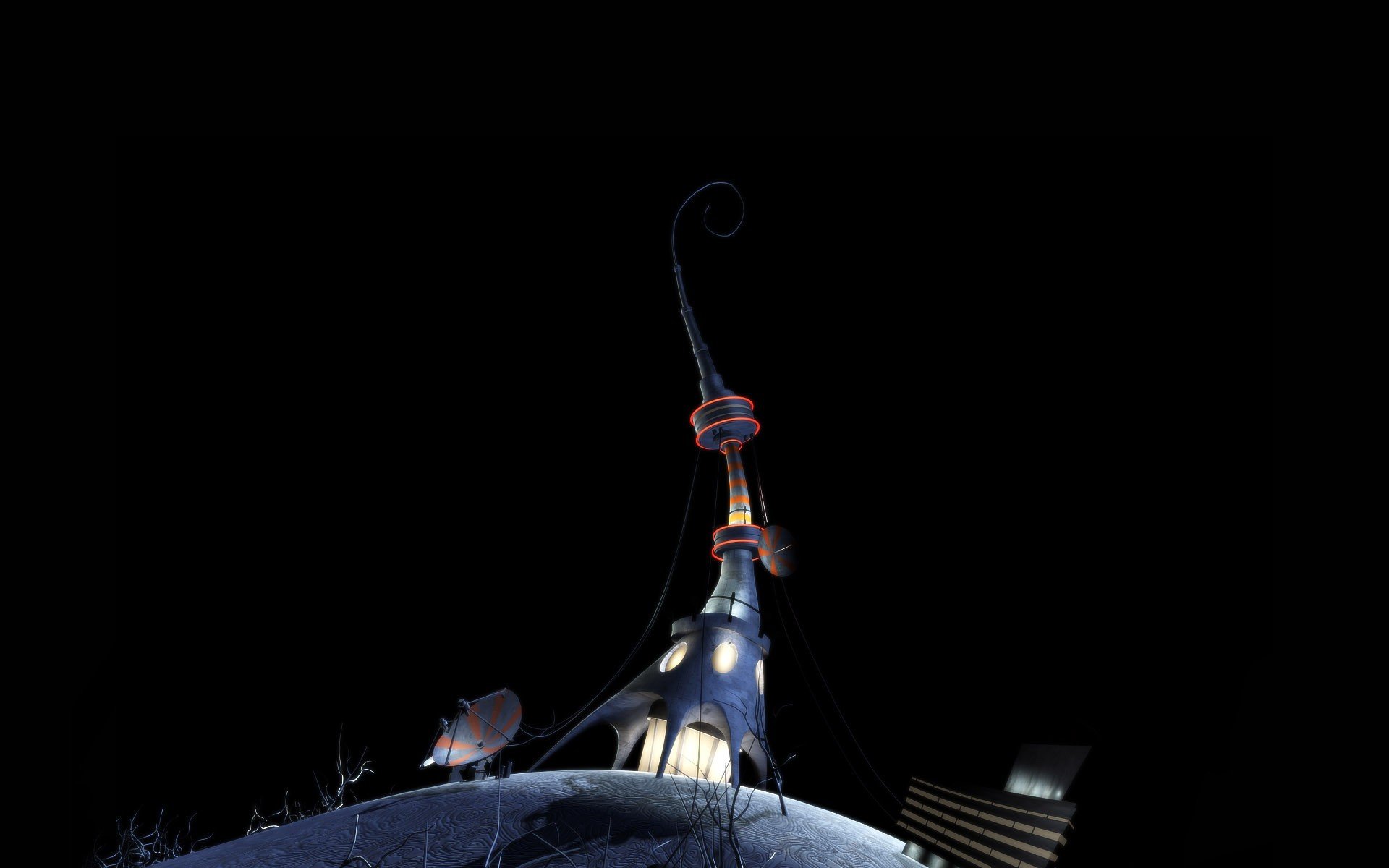 Torre de televisión distorsionada en la esfera del planetaTorre de televisión distorsionada en la esfera del planeta