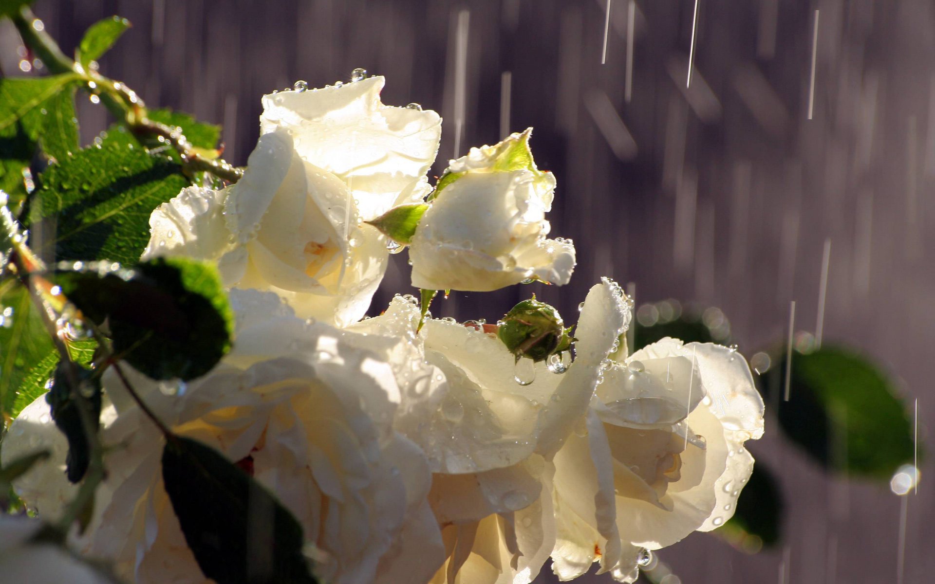 Flores de color lila con gotas de lluvia en pétalosFlores de color lila con gotas de lluvia en pétalos