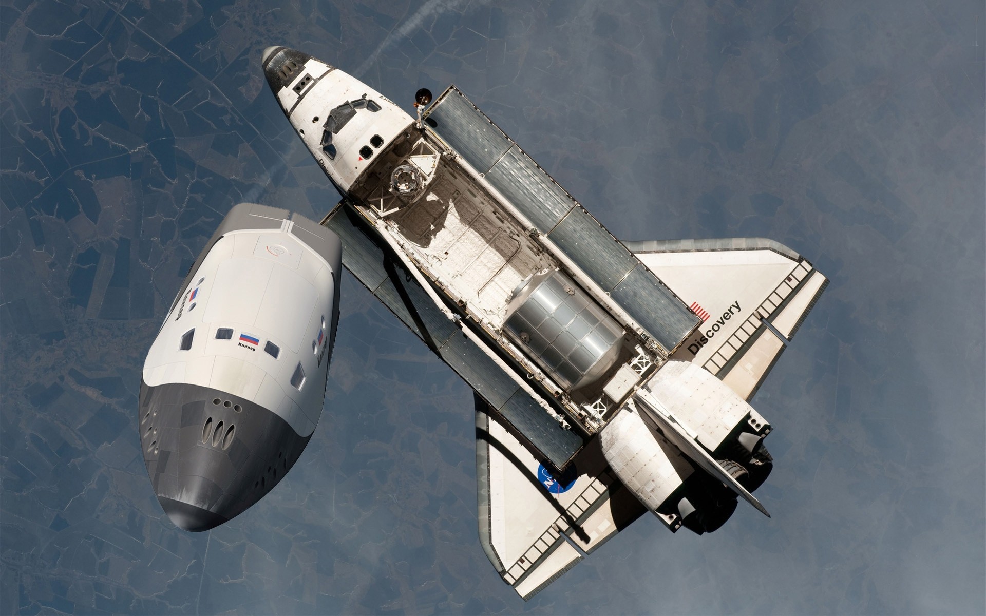 Vista del lanzamiento del transbordador desde la orilla del lago