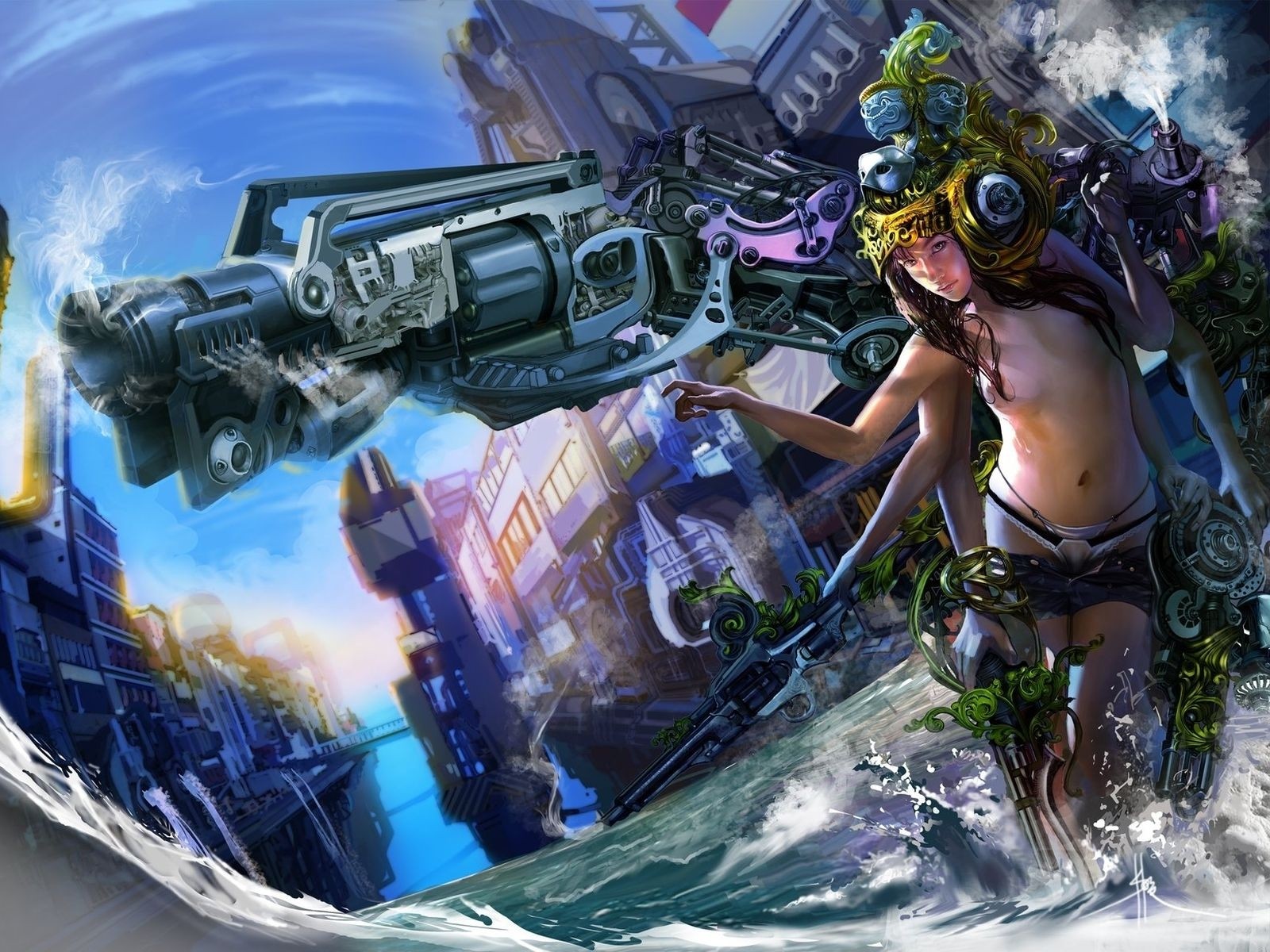 La etiqueta del juego de ordenador, un hombre con un arma en la mano
