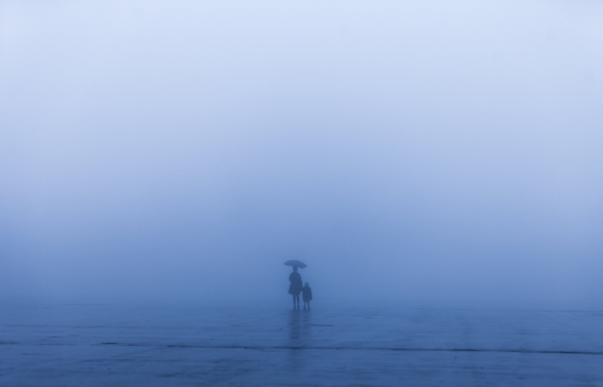 Una mujer con un niño bajo un paraguas en una tormentaUna mujer con un niño bajo un paraguas en una tormenta