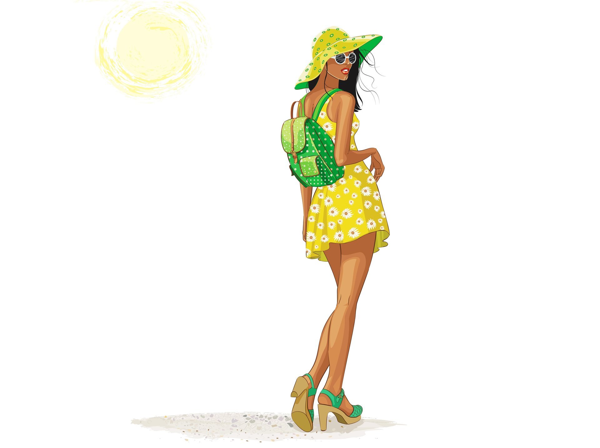 Símbolos del verano con sol amarillo