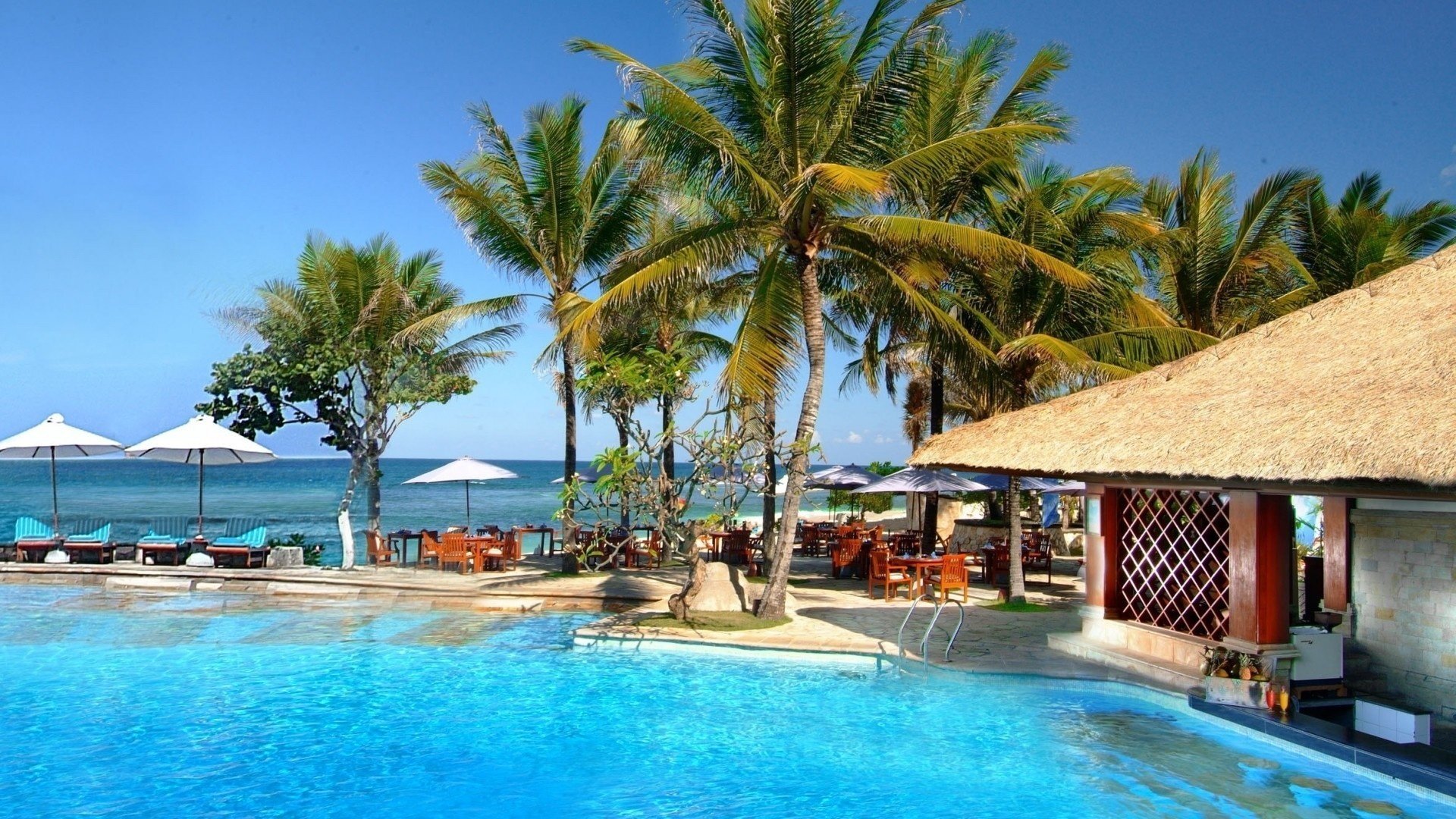Desnuda y sexy morena se extiende tomando el sol en la piscina