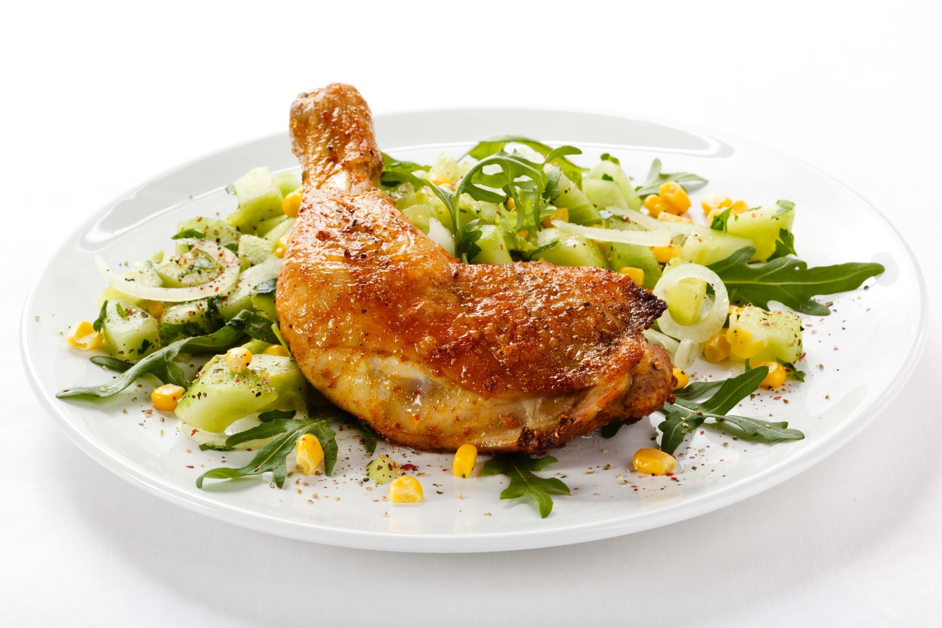 Delicioso pollo al horno en las hojas ensalada