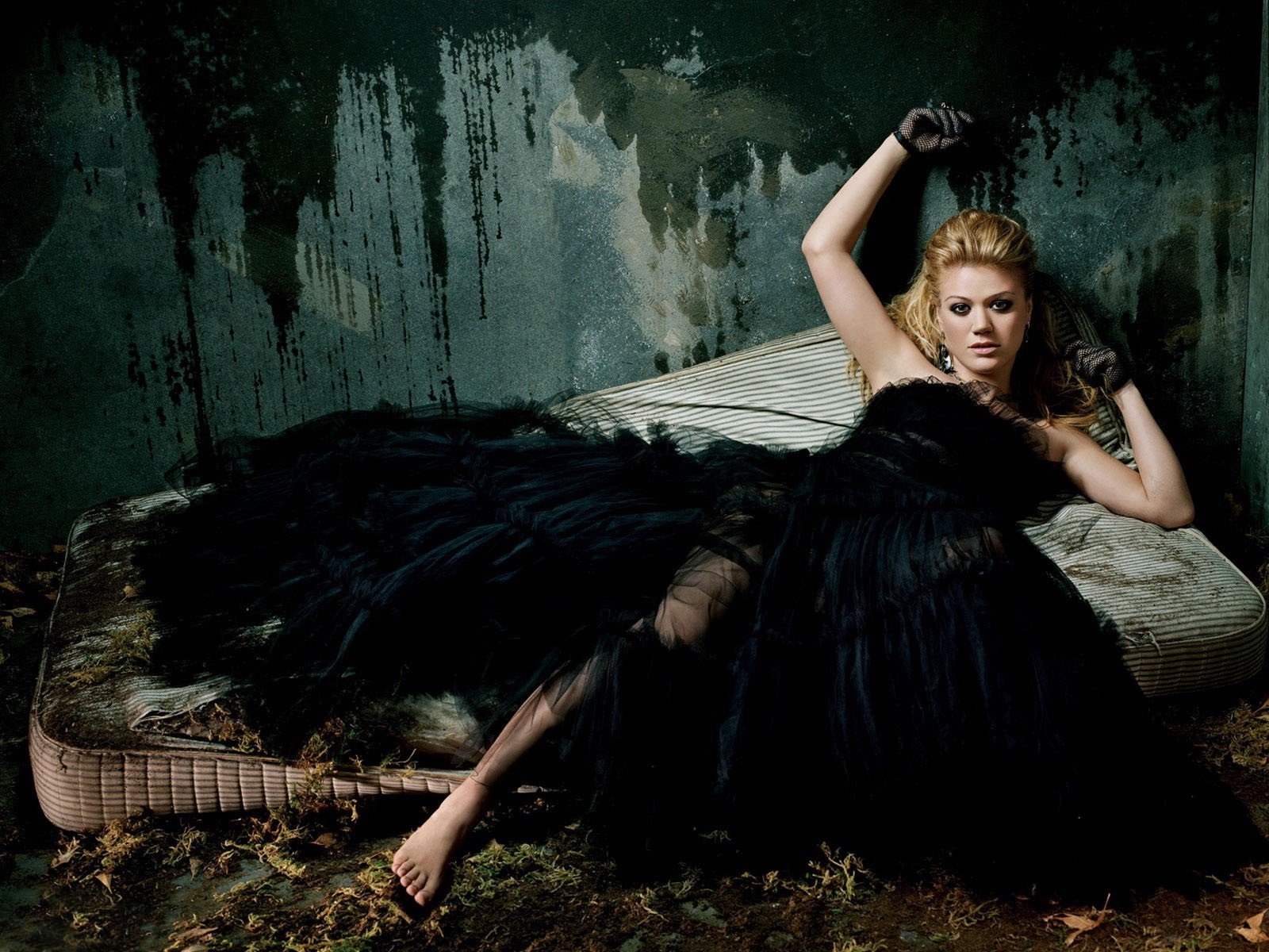 La chica del vestido negro yace sobre un colchón desnudoLa chica del vestido negro yace sobre un colchón desnudo