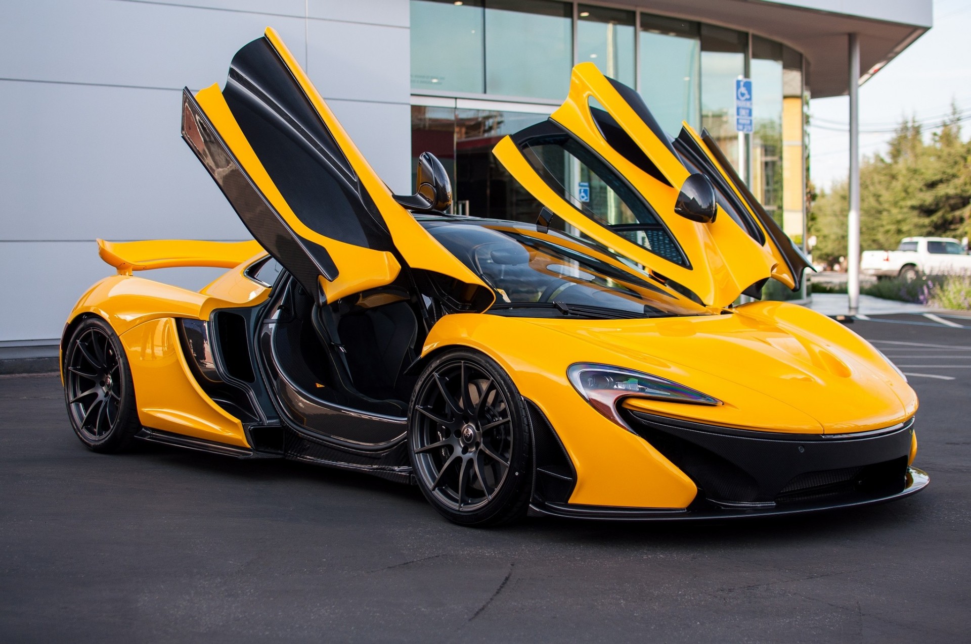 Coche deportivo amarillo contra una pared de ladrilloCoche deportivo amarillo contra una pared de ladrillo