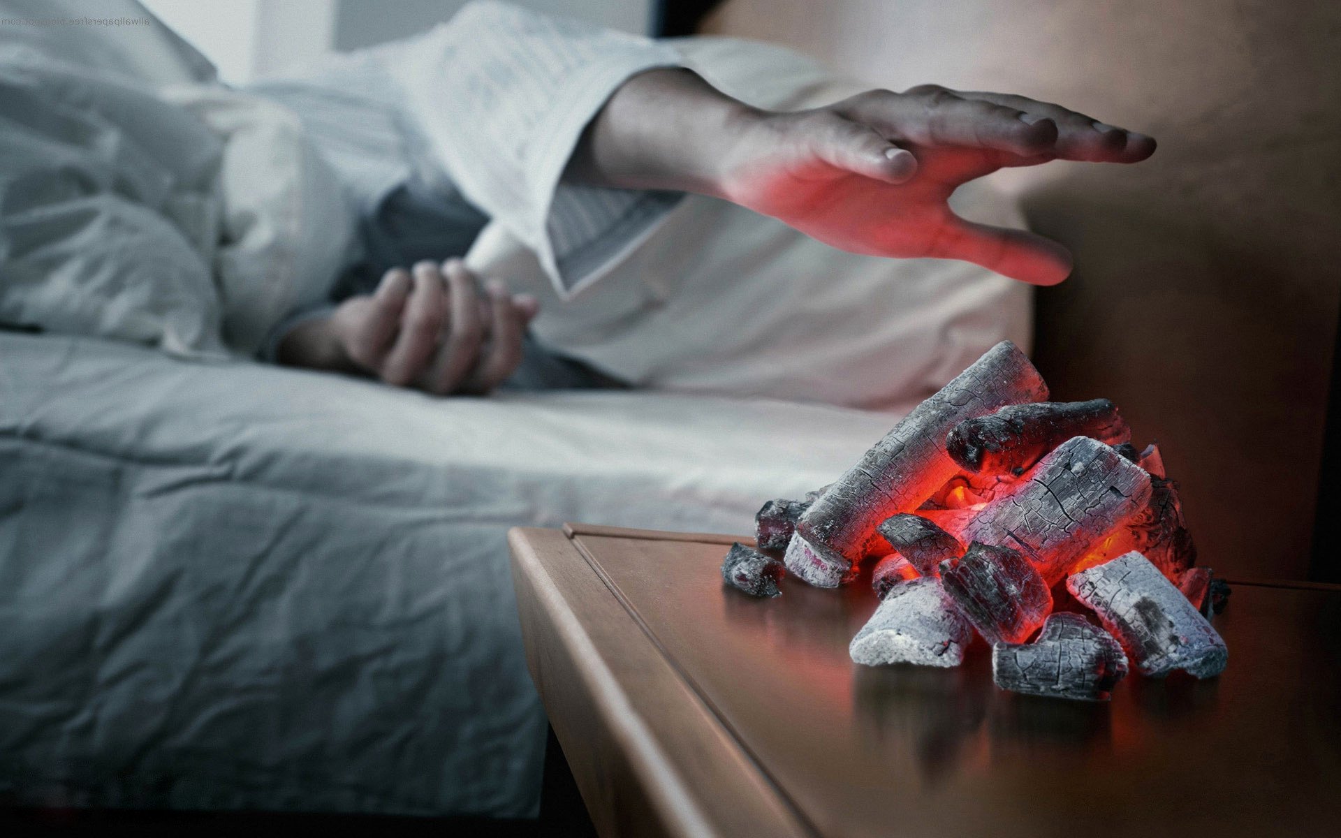 El hombre con la antorcha se cuela a través del bosque nocturnoEl hombre con la antorcha se cuela a través del bosque nocturno