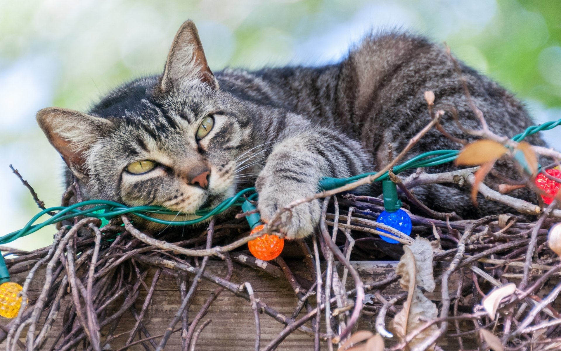 El gato yace en el suelo y mira pensativamente a un ladoEl gato yace en el Suelo y Mira pensativamente a un lado