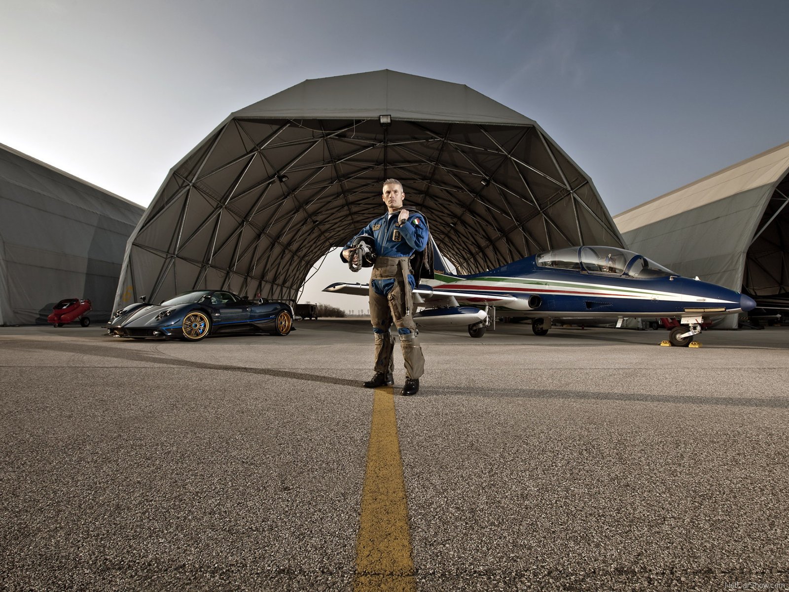Piloto en el fondo de un avión y un coche deportivoPiloto en el fondo de un avión y un coche deportivo