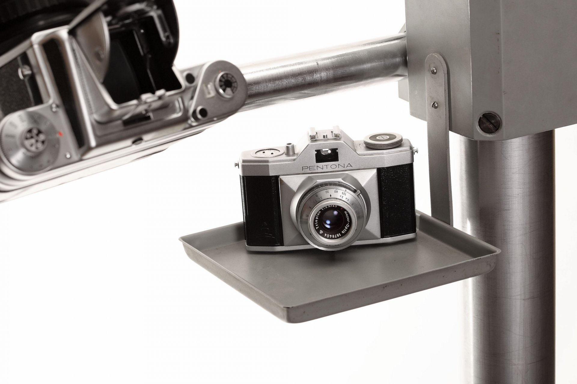Cámara en soportes en blanco y negro
