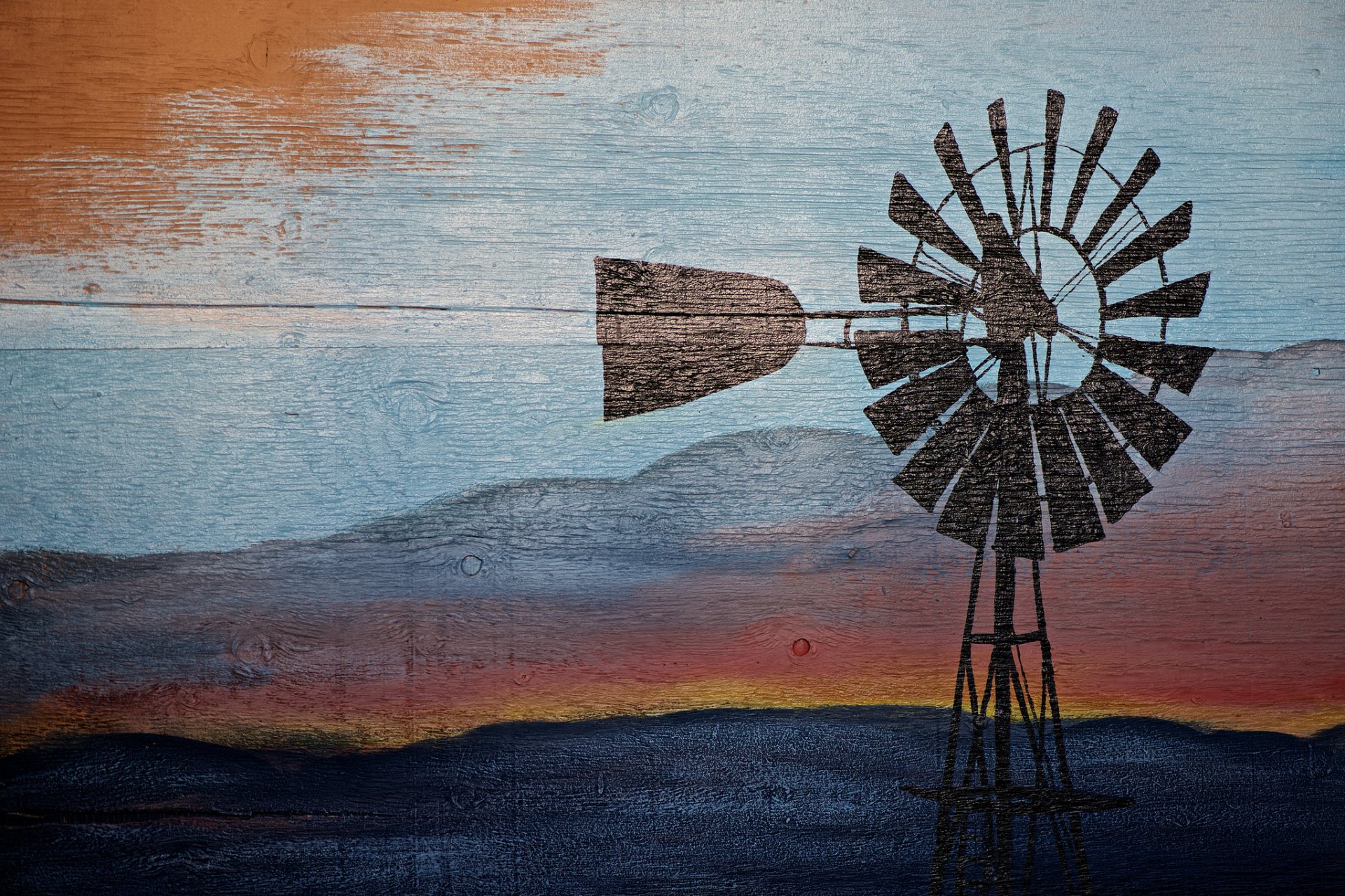 Molino en el fondo de las montañas brillantes - fondos de Escritorio