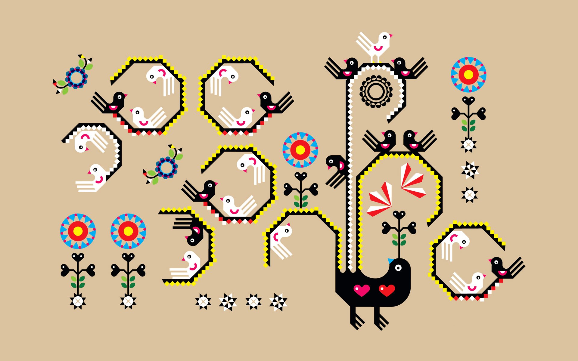 Bordado de aves con dibujos en estilo de arte - fondos de pantalla