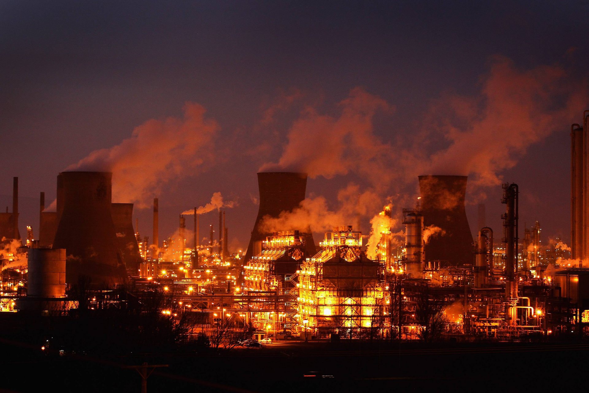 Ciudad nocturna y fábrica con iluminación incluida - fondos de Escritorio