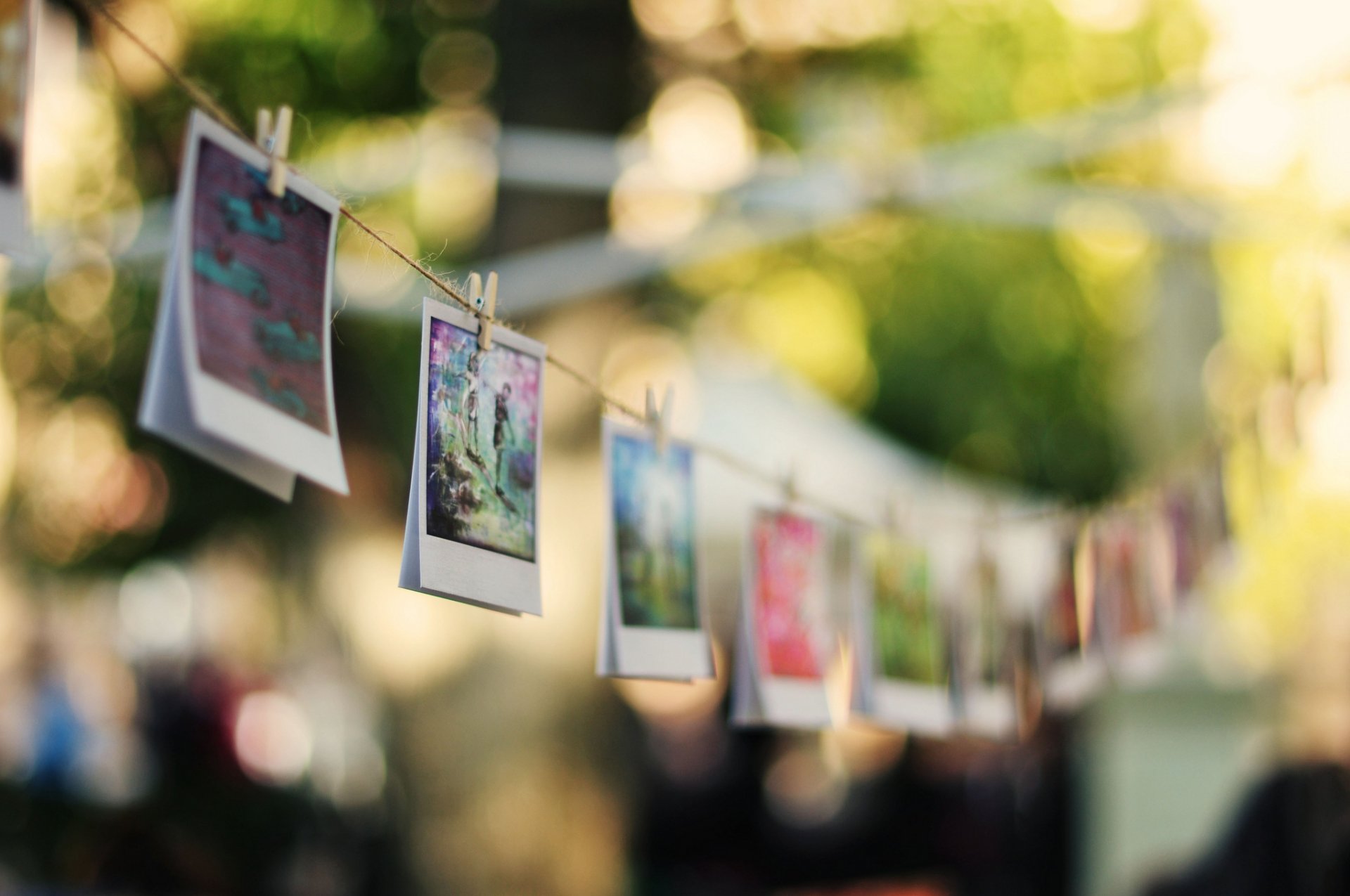 Fotos colgadas de una cuerda en pinzas para la ropa - fondos de Escritorio